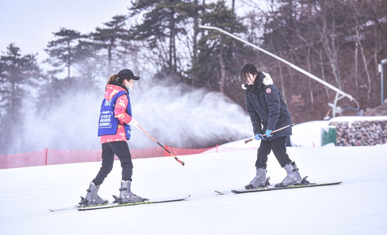 雪场还配置了初、中二级滑道,聘请了东北的专业教练实行现场教学。