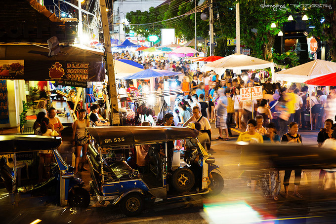 中意青蛙夜市的原因是离不开便宜和优质,当然还有好吃的,这里能满足所有的条件,好吃的山竹仔(做的像山竹一样的形状,有点像鸡蛋仔),泰国特有“糍粑(泰语ziba酸笋的意思)拉面”普古特有烤酸肉(当地特质的一种香肠),鲜榨的各种季节水果果汁和冰沙,大串鱿鱼香香烤,凉拌木瓜丝,现烤的泰式沙爹串串,物廉价美的衣服,独特的手工首饰,泰式风格的装饰品,这些都是平时在商场看不到,买不到,吃不到的特色!
