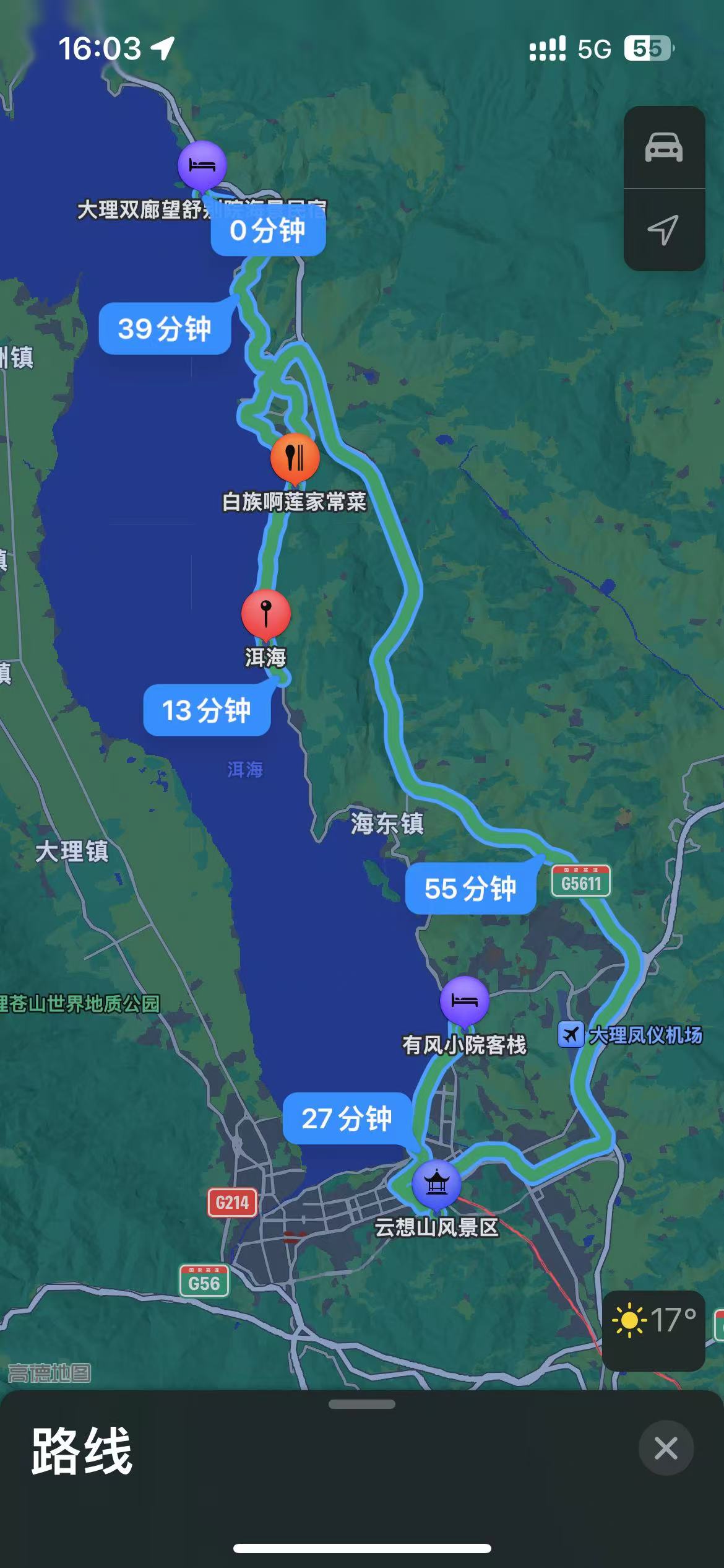 大理双廊望舒别墅海景名宿→白族啊莲家常菜→洱海→云想山风景区→有风小院
